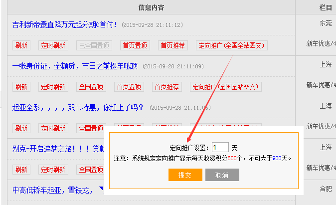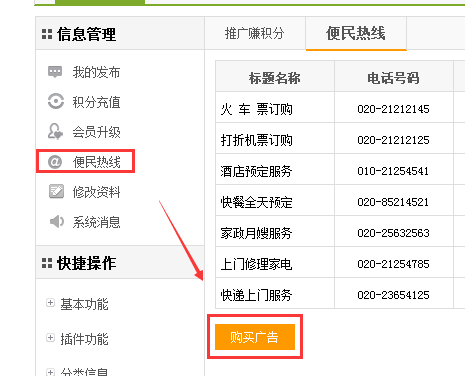 注意购买便民信息的城市!